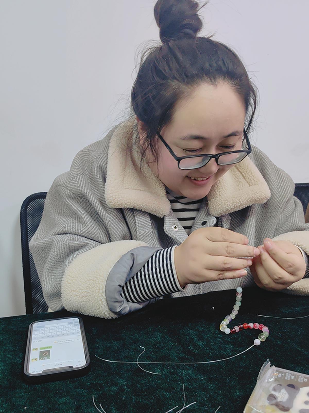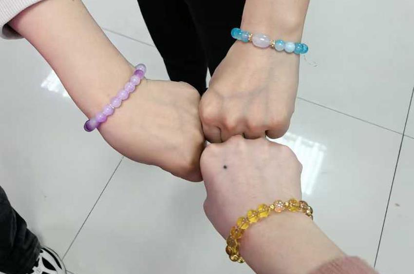 DIY手鏈環(huán)節(jié)為活動(dòng)注入了一股溫馨與浪漫的氣息。制作期間,大家彼此交流創(chuàng)意,分享串珠技巧,歡聲笑語(yǔ)不斷。完成作品后,女員工們自豪地佩戴親手制作的手鏈,相互欣賞、拍照留念,每一條手鏈都承載著她們獨(dú)特的設(shè)計(jì)與美好的心情。