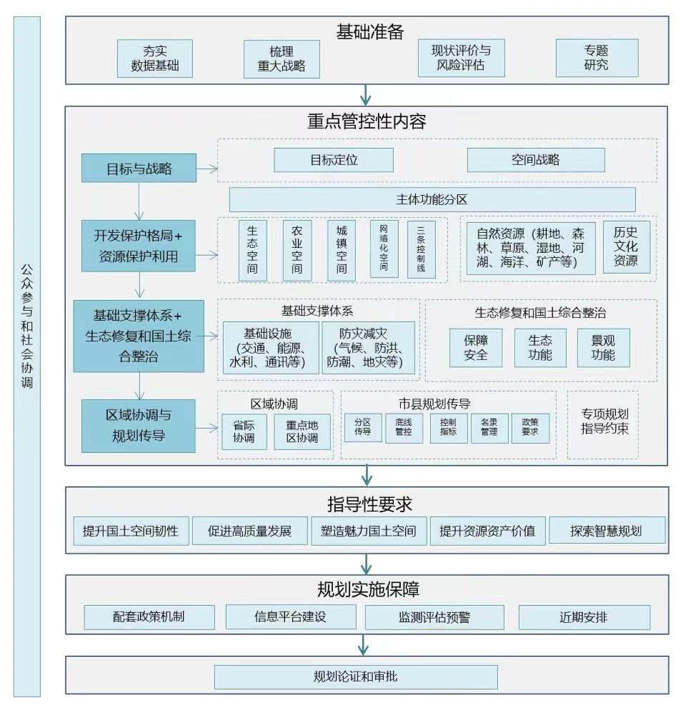 其次,《規(guī)程》規(guī)定了在省級國土空間規(guī)劃編制工作進(jìn)行中,要堅持問題導(dǎo)向與目標(biāo)導(dǎo)向相結(jié)合的戰(zhàn)略目標(biāo)。一方面,通過資源環(huán)境承載能力和國土空間開發(fā)適宜性雙評價,以及國土空間利用狀況評估和風(fēng)險評估,確定生態(tài)空間、農(nóng)業(yè)空間和城鎮(zhèn)空間,研判空間安全、利用、品質(zhì)等方面問題和氣候變化、人口變化等可能帶來的風(fēng)險挑戰(zhàn)等,促進(jìn)國土空間集聚開發(fā)、分類保護(hù)和綜合整治;另一方面,要立足于省域資源環(huán)境稟賦和經(jīng)濟(jì)社會發(fā)展階段,針對國土空間開發(fā)保護(hù)突出問題、風(fēng)險挑戰(zhàn)、未來趨勢,明確省域國土空間開發(fā)、保護(hù)和整治的戰(zhàn)略目標(biāo)和總體布局,制定省級國土空間發(fā)展的總體定位,落實《全國國土空間規(guī)劃綱要(2021-2035年)》目標(biāo)任務(wù),并進(jìn)一步細(xì)化實現(xiàn)目標(biāo)的路徑和策略。
