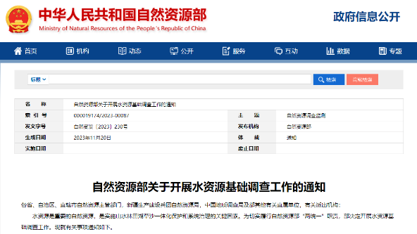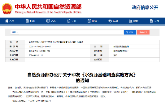 水是生命之源,是基礎(chǔ)性自然資源和戰(zhàn)略性經(jīng)濟(jì)資源,是生態(tài)環(huán)境的控制性要素,在經(jīng)濟(jì)、社會發(fā)展和國家安全中具有極其重要的地位。同時,水資源是實(shí)施山水林田湖草沙一體化保護(hù)和系統(tǒng)治理的關(guān)鍵因素,為切實(shí)履行自然資源部“兩統(tǒng)一”職責(zé),2023年11月20日自然資源部發(fā)布《自然資源部關(guān)于開展水資源基礎(chǔ)調(diào)查工作的通知》(自然資發(fā)〔2023〕230號)文件,于2024年3月11日自然資源部發(fā)布《自然資源部辦公廳關(guān)于印發(fā)水資源基礎(chǔ)調(diào)查實(shí)施方案的通知》(自然資辦發(fā)〔2024〕7號)文件,要求各地方實(shí)施水資源基礎(chǔ)調(diào)查工作。