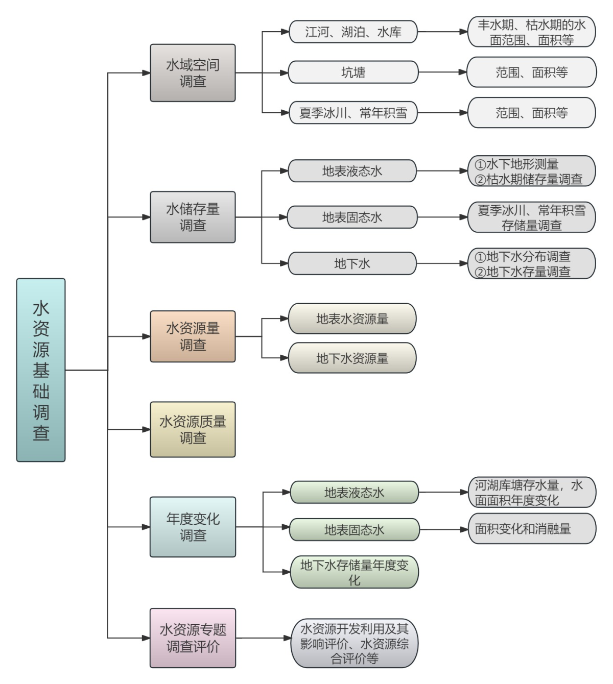 水資源基礎(chǔ)調(diào)查中專題調(diào)查內(nèi)容主要包括水資源開發(fā)利用及其影響評價、水資源綜合評價等專題調(diào)查評價,如下圖所示。